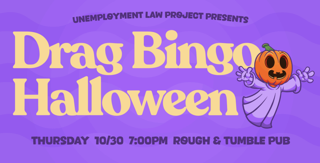 Unemployment Law Project is excited to invite you to join us for Drag Bingo Halloween on Thursday, October 30th; a family-friendly night of fun, costumes, and bingo! Food and drink will be available at our venue, the wonderful Rough & Tumble Pub. There will be an optional costume contest and prizes galore!